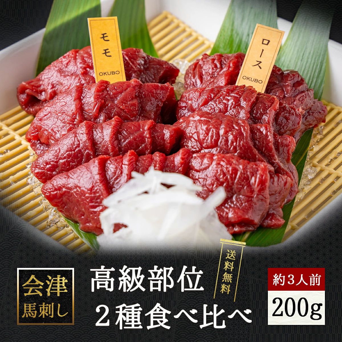 【送料無料】会津国産馬刺し高級部位2種セット 合計200g (ランプ100gロース 100g)【自家製にんにく辛子味噌付き】