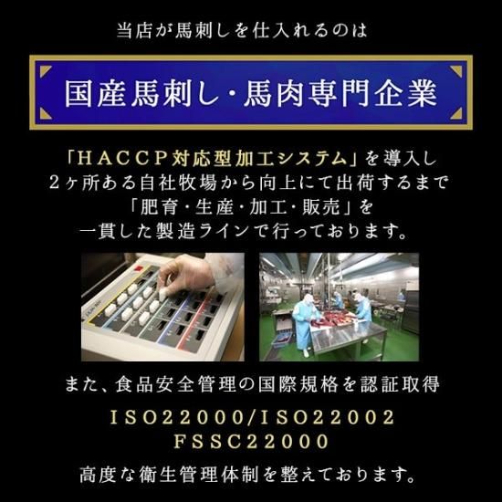 | 商品内容 | 国産馬刺し ロース 約100g前後のブロック(1.5人前、真空パックになっております。) 自家製にんにく辛子味噌 10g |